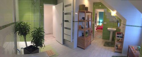 Elle comprend une cuisine américaine équipée, un grand séjour, une buanderie et 2 WC indépendants.